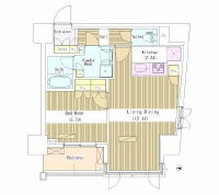 特色:オートロック、エレベータ、BSアンテナ、CS、CATV、エアコン、ガスキッチン、バストイレ別、室内洗濯場、浴室換気乾燥機、追焚、宅配ボックス、楽器可、独立洗面所、システムキッチン、フローリング、駐車場