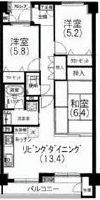 間取詳細:LDK13.4、洋5.2、洋5.8